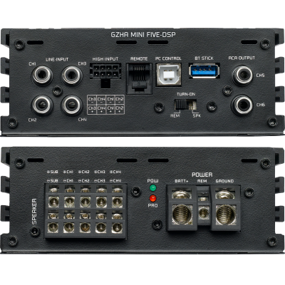 5-channel amplifier with high efficient class D circuit, integrated DSP and compact dimensions