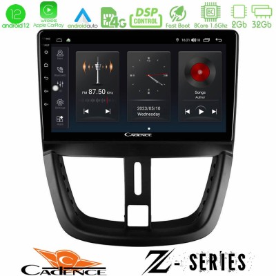 Cadence Z2 Series 8Core Android14 4+64GB Peugeot 207 Navigation Multimedia Tablet 9" Με Carplay & Android Auto