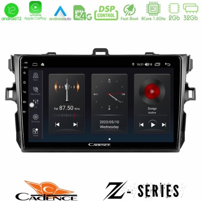 Cadence Z2 Series 8Core Android14 4+64GB Toyota Corolla 2007-2012 Navigation Multimedia Tablet 9" Με Carplay & Android Auto